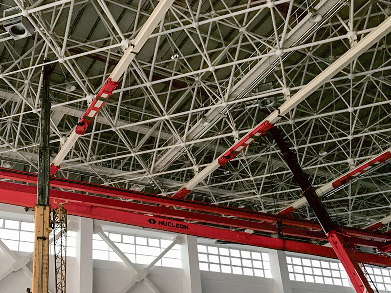 航天领域多支点悬挂起重机是我司针对航空行业网架结构的厂房和适合精密装配、物料高效过跨、吊装异形工件的需求而开发的专用类起重产品,具有性能卓越、安全可靠、高效快捷、节能环保和自动调节等特点,适用于飞机制造、机库维修、物流中转等场所。