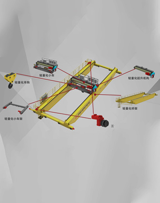 航空航天领域多支点悬挂起重机采用采用轻量化、模块化和自动化设计,起升机构采用性能卓越、技术先进、安全可靠、节能环保的新中式电动葫芦,大车运行机构采用三合一驱动装置分别驱动,控制采用先进的变频调速控制系统。
