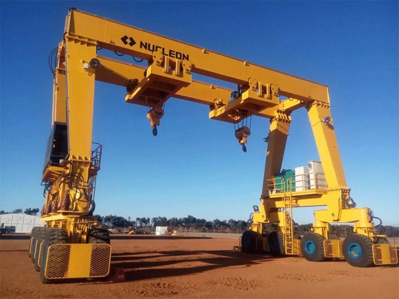 轮胎式搬运机是一种流动式的起重设备,它起吊安全可靠,转向方式多样,自带动力,机动灵活。拥有多吊点同步起吊、轮胎无打滑技术、同步检测反馈控制、灵活多变的转向控制、复杂路面门架内力释放等多种核心技术。