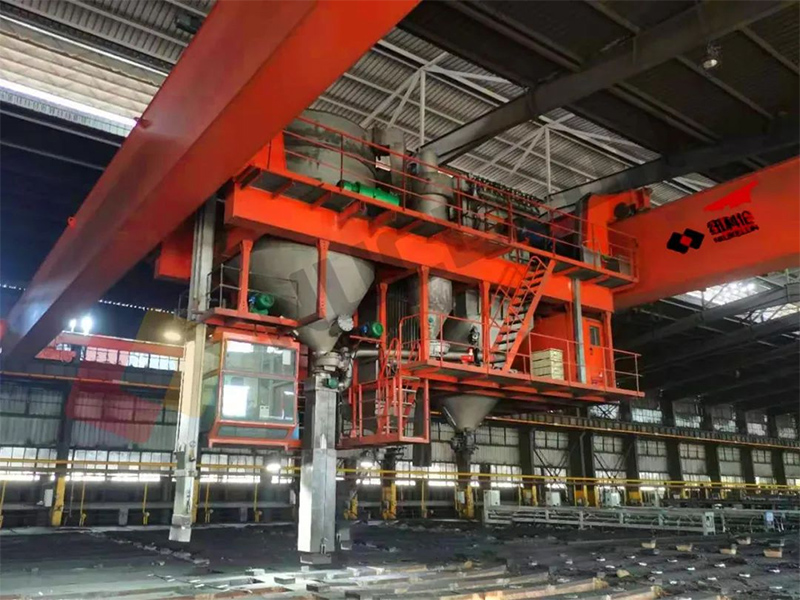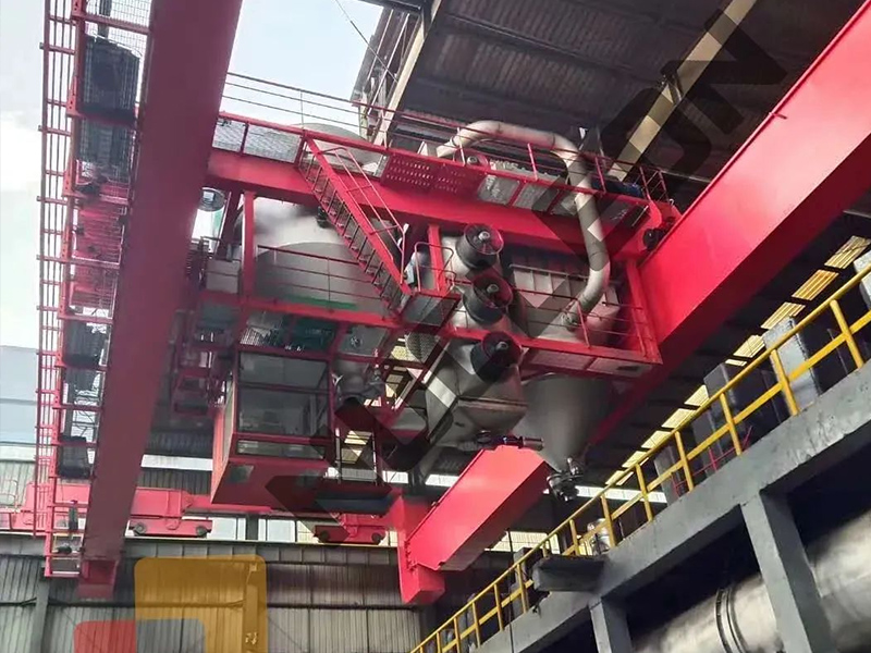 焙烧用吸卸料起重机是服务于碳素行业铝电解用阳极炭块焙烧的专用起重机,集炭块转运装炉、填充料吸放、粉尘收集输送、焙烧设备换位作业等功能于一体,可有效提高阳极焙烧车间生产效率,极大改善车间作业环境,减轻工人劳动强度。